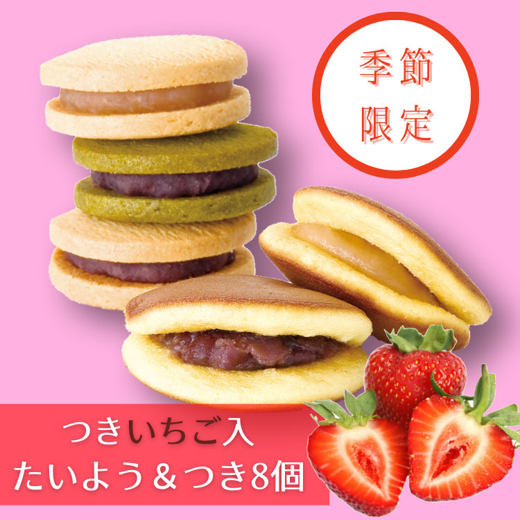 [つき限定いちごあん入り] たいよう&つき8個セット|※お届けは5/10まで※小ぶりなどらやきとあんこクッキーサンドの詰合せ