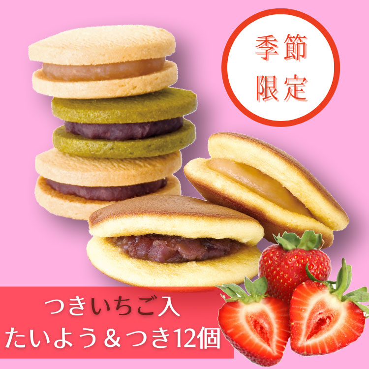 [つき限定いちごあん入り] たいよう&つき12個セット|※お届けは5/10まで※小ぶりなどらやきとあんこクッキーサンドの詰合せ