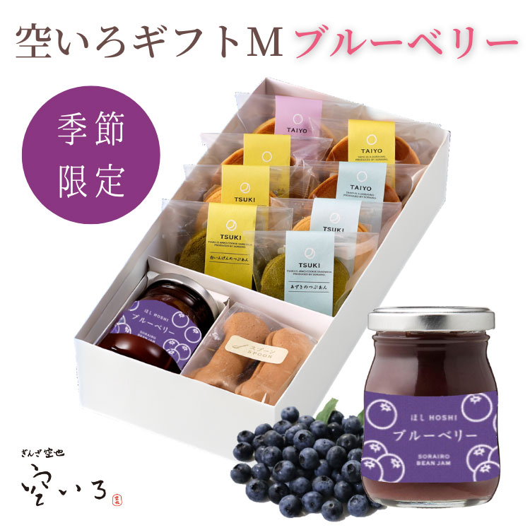 [ほし限定ブルーベリー入り] 空いろギフトM | ※お届けは5/10まで※どら焼きとあんこクッキーサンドとあんこの瓶詰めのセット