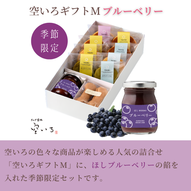 [ほし限定ブルーベリー入り] 空いろギフトM | ※お届けは5/10まで※どら焼きとあんこクッキーサンドとあんこの瓶詰めのセット
