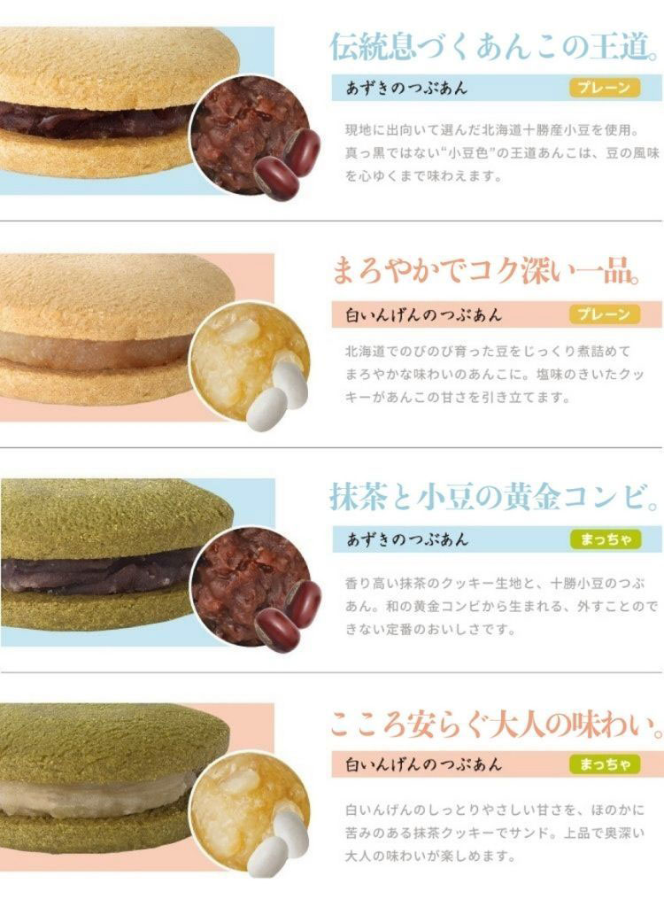 北海道でのびのび育った豆をじっくり煮詰めてまろやかな味わいのあんこに。塩味のきいたクッキーがあんこの甘さを引き立てます。