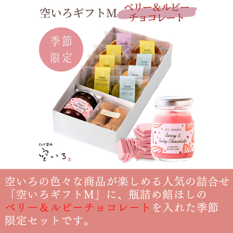 [ほし限定ベリー&ルビーチョコレート入り] 空いろギフトM | ※お届けは3/14まで※どら焼きとあんこクッキーサンドと瓶詰めあんの詰合せ