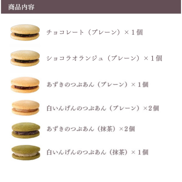 砂糖(国内製造)、小麦粉、小豆、マーガリン、還元水飴、アーモンドパウダー、卵加工品、バター、牛乳、ココアパウダー、食塩/寒天、(一部に乳成分・小麦・卵・アーモンド・ゼラチンを含む)