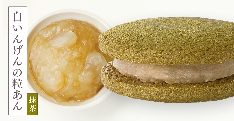 白いんげんのしっとり優しい甘さをほのかに苦味のある抹茶クッキーでサンド。上品で奥深い大人の味わいが楽しめます。