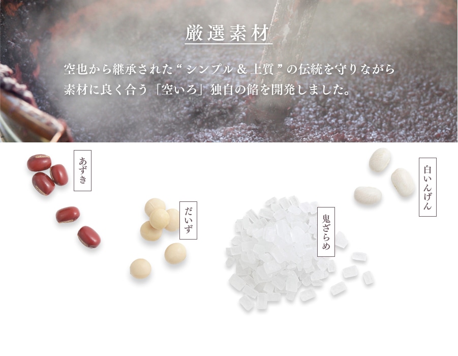 現地に出向いて選んだ北海道十勝産小豆を使用。真っ黒ではない“小豆色”の王道あんこは、豆の風味を心ゆくまで味わえます。