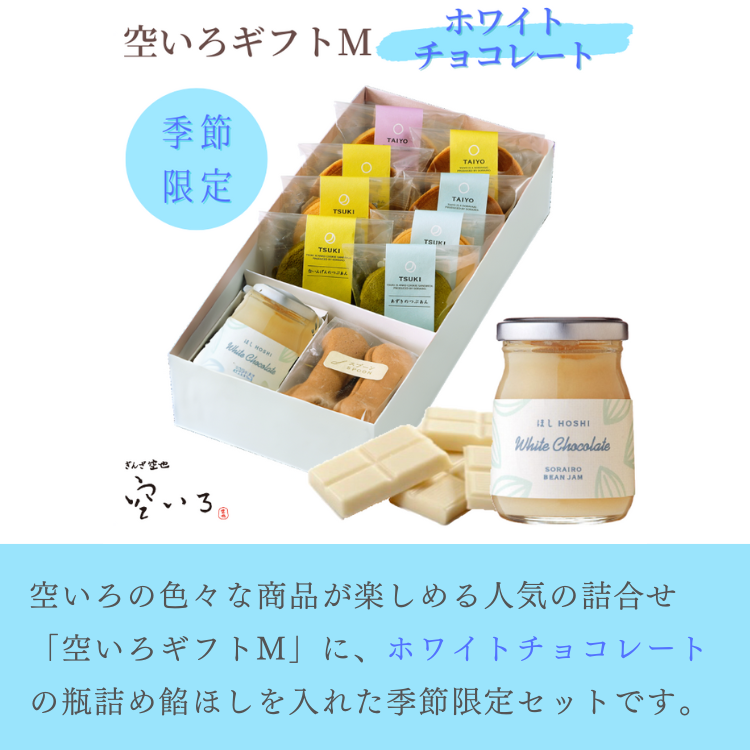 [ほし限定ホワイトチョコレート入り] 空いろギフトM | ※お届けは3/14まで※どら焼きとあんこクッキーサンドと瓶詰めあんの詰合せ