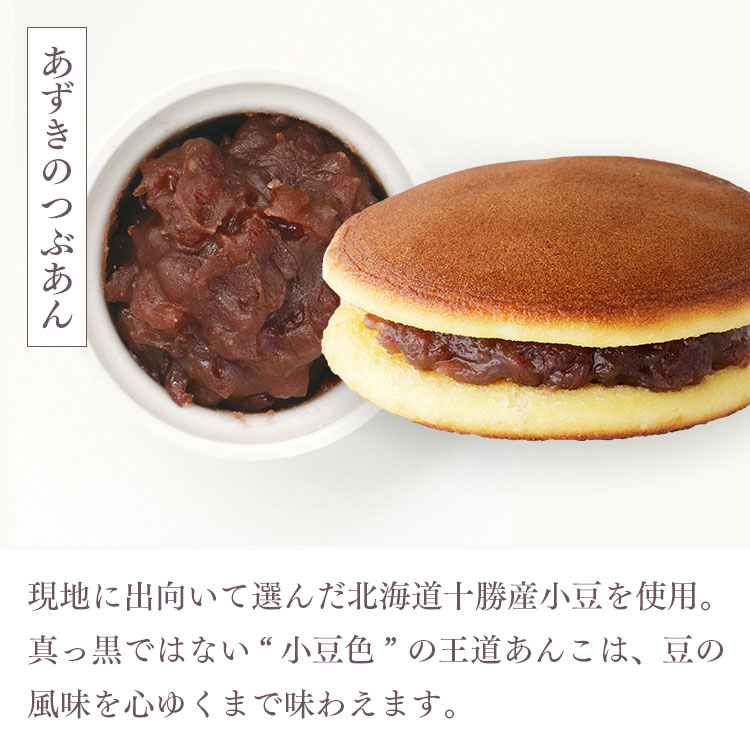現地に出向いて選んだ北海道十勝産小豆を使用。真っ黒ではない“小豆色”の王道あんこは、豆の風味を心ゆくまで味わえます。
